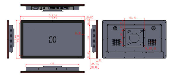 O tamanho da diagonal é de 21,5 polegadas, com as dimensões de 519.14 * 310.60mm, área de exibição de 476.64 * 268.11mm,Este monitor de ecrã táctil proporciona uma grande área de visualização, garantindo aos utilizadores uma boa experiência.
